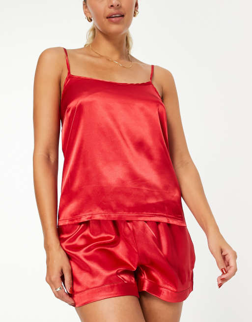 Missguided 7 piece satin pyjama set in red