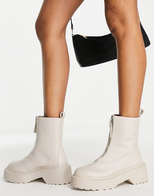 Missguided chunky ankle boot with zip up detail in sand
