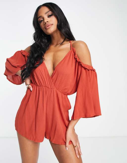 Missguided cold shoulder playsuit in rust