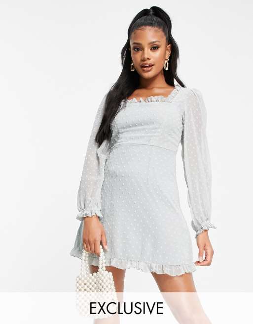 Missguided dobby skater dress with flutter sleeve in pale blue