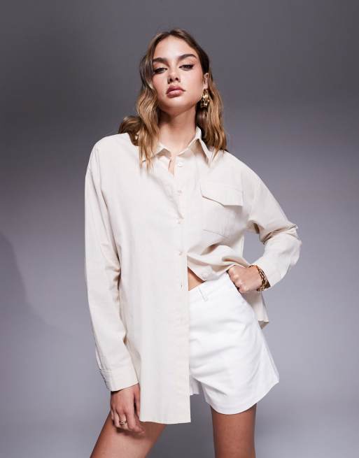 Missyempire linen look pocket front shirt in cream