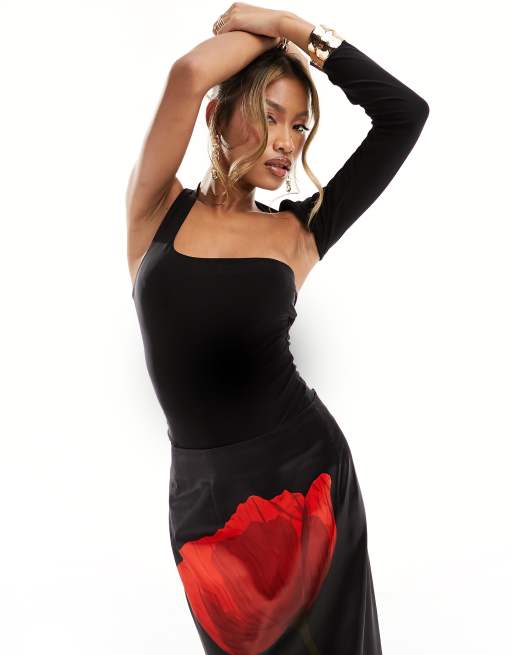 Missyempire slinky cut out one shoulder top in black