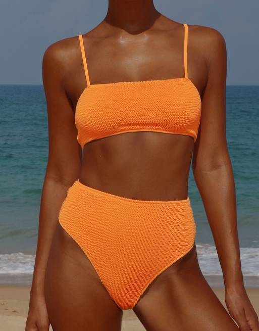Moda Minx Scrunch high waist bikini bottom in tangerine