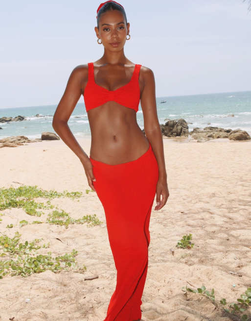 Moda Minx Scrunch long skirt in red