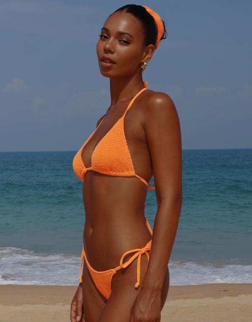 Moda Minx Scrunch tie side bikini bottom in tangerine