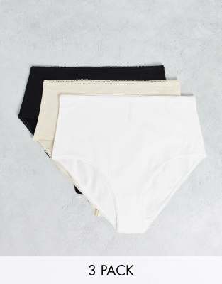 Monki Aina 3 pack high waist briefs in black white beige
