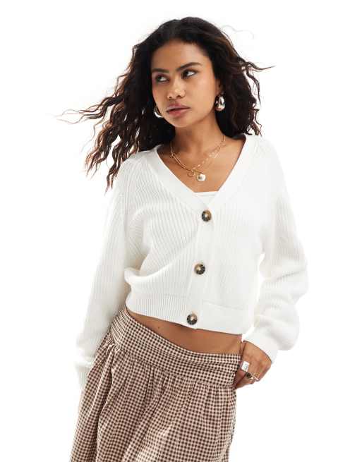 Monki cable rib knitted cardigan in white