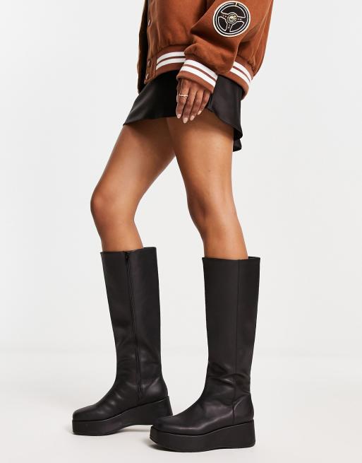 Monki chunky knee high boot in black