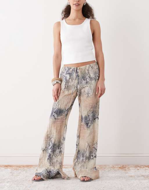 Monki crinkle wide leg trousers in snake print
