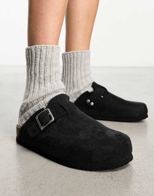 Monki faux suede slip ins clogs in black