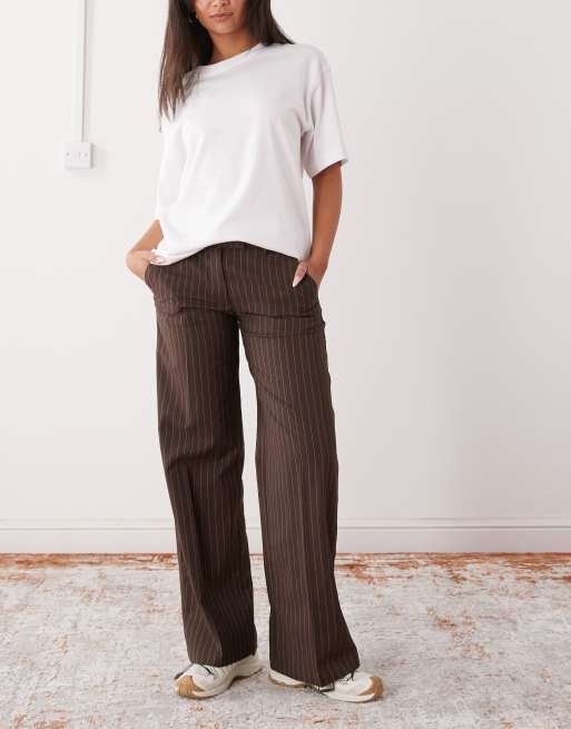 Monki high waist wide leg tailored trousers in brown pinstripe