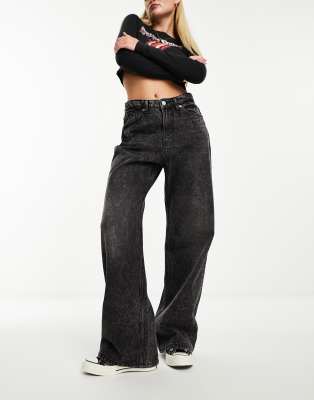 Monki Iku high waisted loose fit jeans in black dark galaxy black
