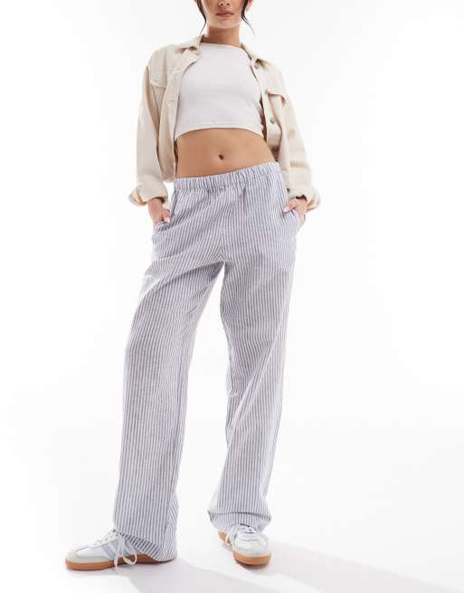 Monki linen drawstring waist trousers in white and navy stripes