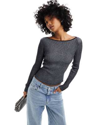 Monki long sleeve knitted crop top in black and white stripe