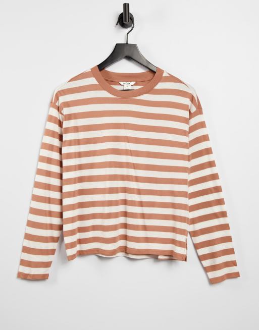 Monki Maja cotton long sleeve t-shirt in pink and beige stripe - PINK
