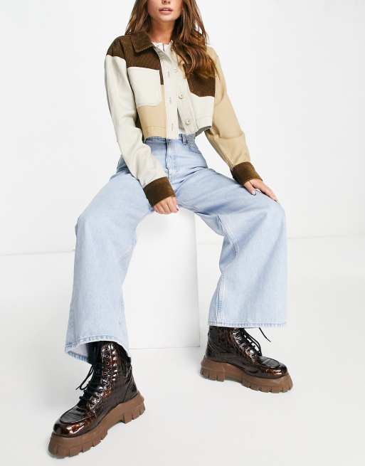 Monki Micki cotton high waist wide leg jeans in light blue wash - LBLUE