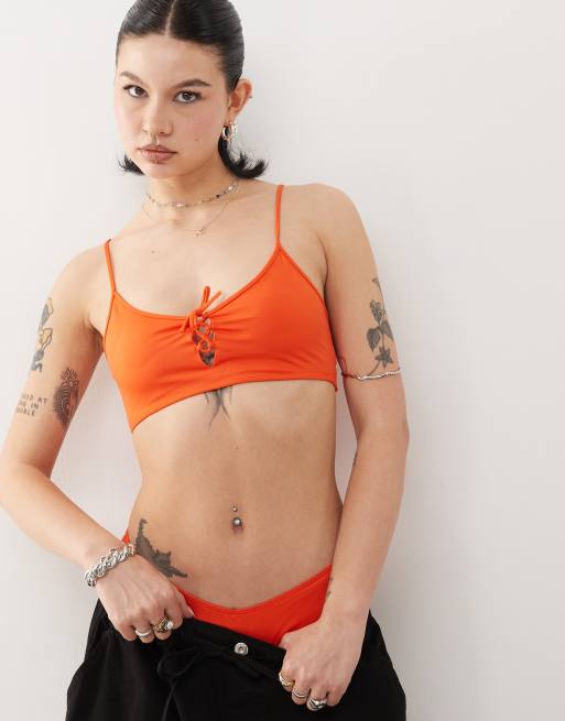 Monki mix and match scoop neck bikini top with tie front detail in peach