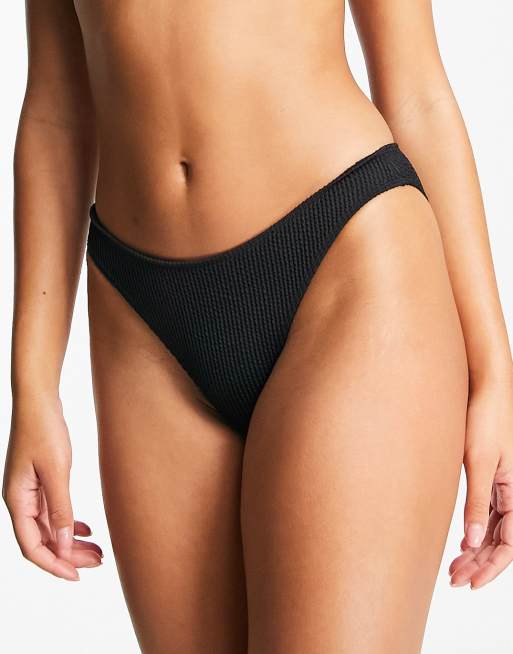 Monki mix&match ribbed bikini brief in black