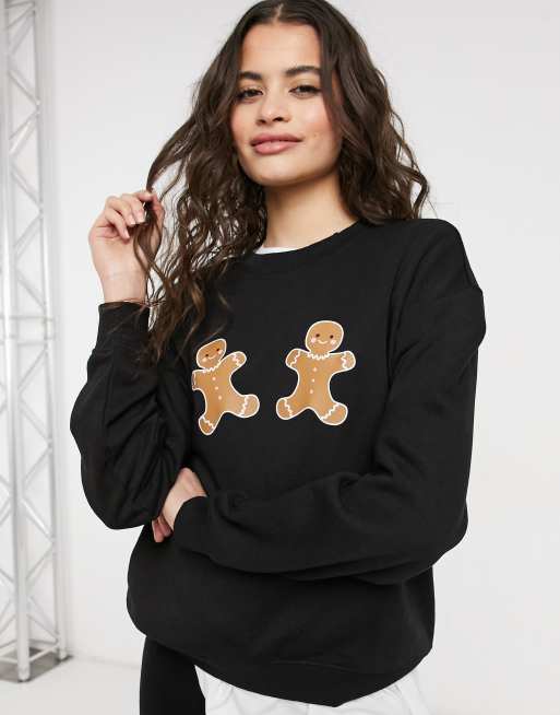 Monki Nana cotton blend gingerbread man print sweatshirt in black - BLACK