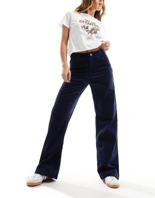 Monki Naoki straight leg cord trousers in navy