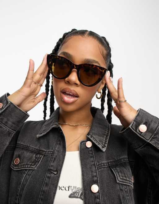 Monki oversized circle cat eye sunglasses in brown tortoise
