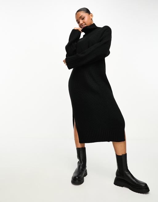 Monki oversized midi jumper dress with side splits in black