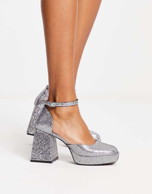 Monki platform square toe heel in silver glitter