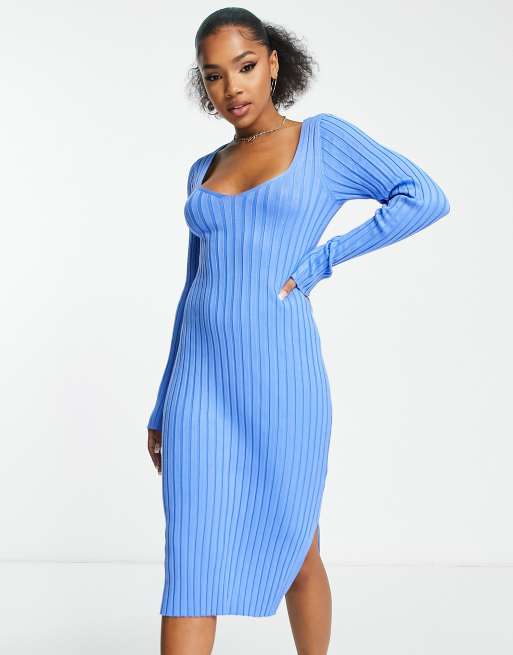 Monki rib knit bodycon midi dress in blue