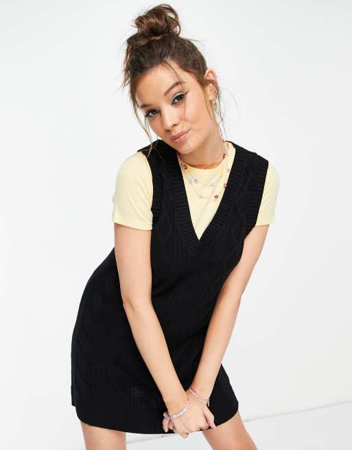 Monki Robin cotton knitted v neck sleeveless mini dress in black - BLACK