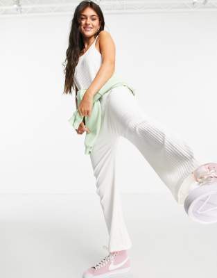 Monki Sara ribbed jersey cami jumpsuit in off white