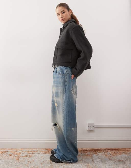 Monki short collared jacket with wool in dark grey