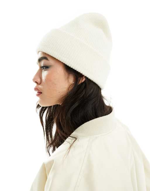 Monki soft knit beanie hat in cream