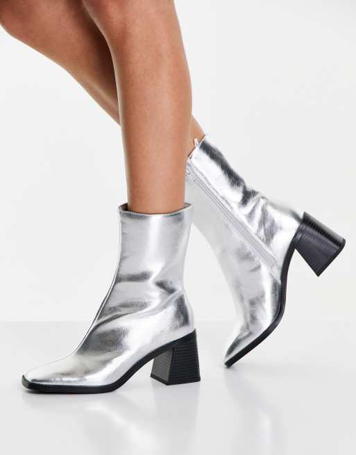 Monki square toe heeled boots silver