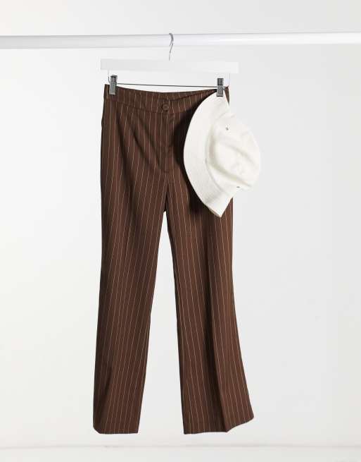 Monki Wendy flared tailored trousers in brown