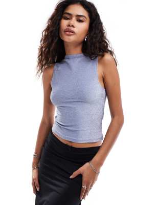 Motel airien shimmer vest top in light blue