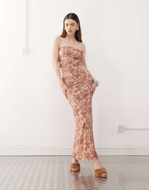 Motel alfreda floral print maxi skirt in pink