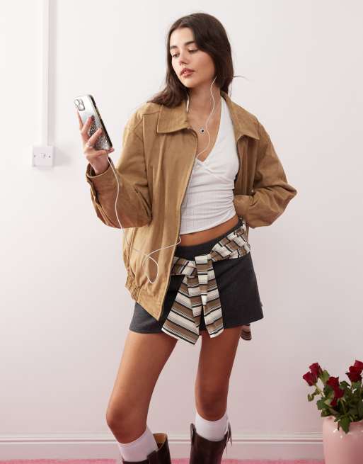 Motel cavita faux suede longline bomber jacket in tan