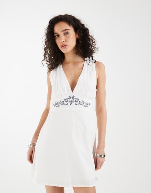 Motel Chandler blossom embroidered mini dress in white