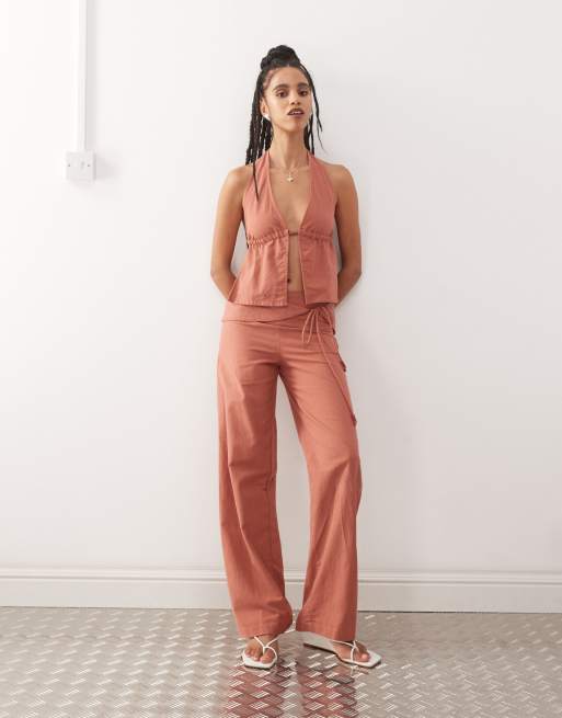 Motel cursa sarong overlay bead detail linen trousers in tuscan red