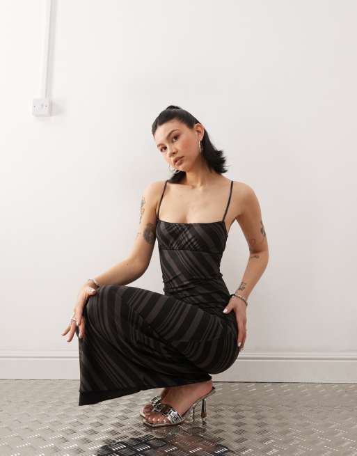 Motel darsih striped mesh cami maxi dress in dark grey