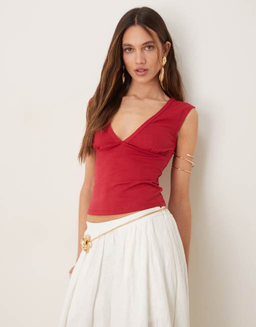 Motel emberly plunge top in red