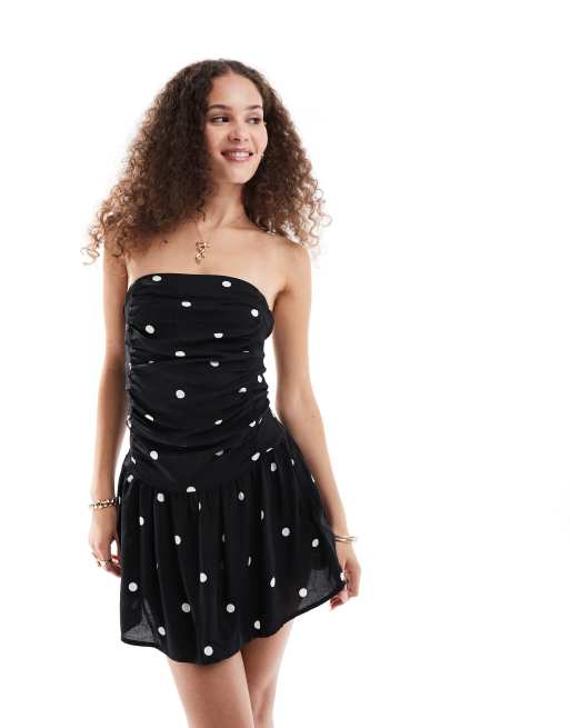 Motel Exclusive zhao polka dot bandeau mini dress in black