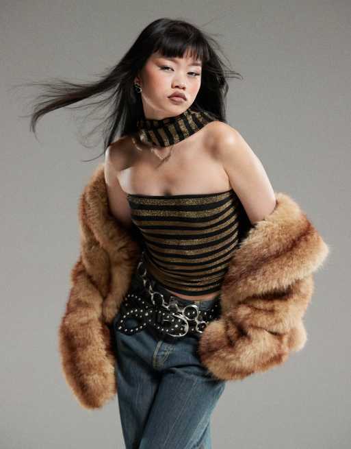 Motel Jeldia bandeau top in gold stripe