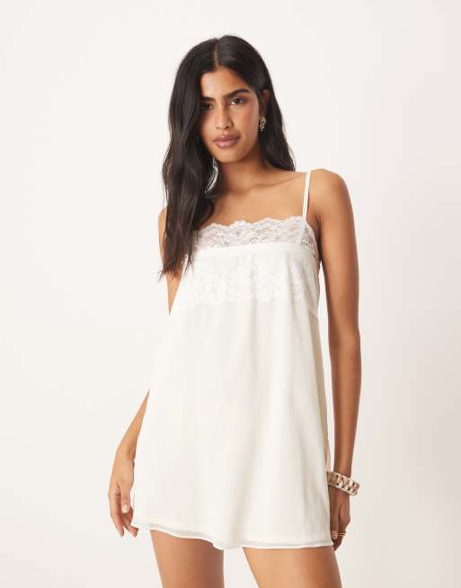 Motel juvia lace edge camisole mini dress in ivory