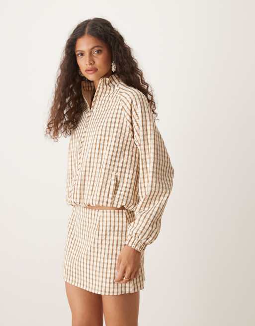Motel kalle check bomber jacket in brown
