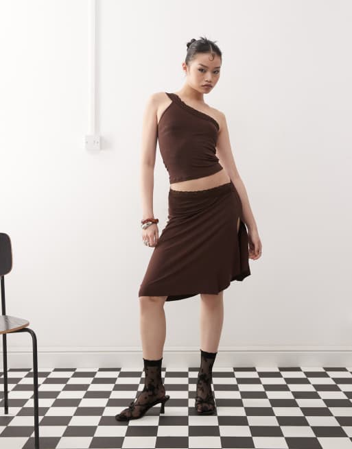 Motel Laudine midi co-ord skirt in bitter chocolate