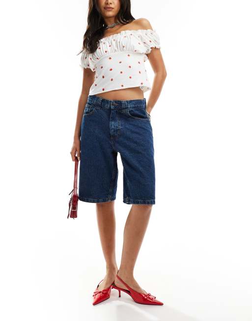 Motel low rise denim jorts in blue stone