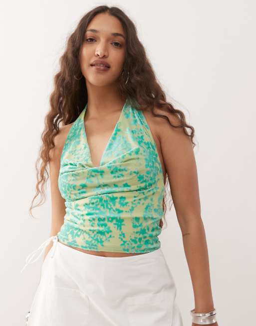 Motel minova floral flocked cami top in green blue