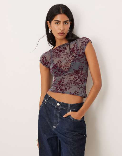 Motel Nova fine leaf flower top in smoke grey