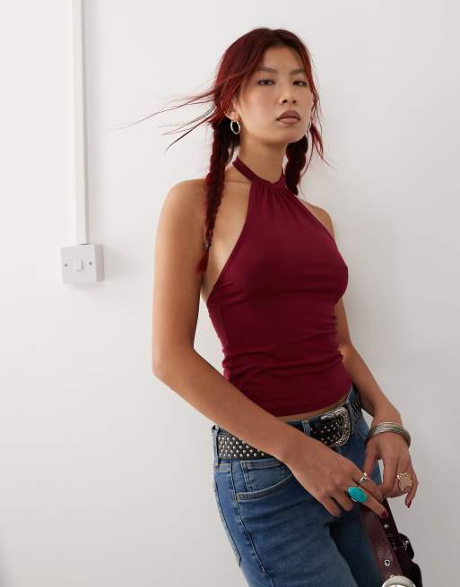Motel raceline high neck halter top in burgundy